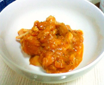 今日は食材宅配の日です。帰宅してみると玄関先に大量の発泡スチロールの箱やプラスティックケースが並んでいて、食品が入っています。500g入りの鶏もも肉を見て、カレーかシチューを作ろうと思ったのですが、トマト缶があるのを発見。チキンカチャトラにしました。21時から作り始め、煮込む事1時間半。すっごく美味しく出来ました。今日はもう食べるわけに行かないので、私はとりあえず「カレー風味のスープ」と「きゅうりの冷奴」を頂きました。お豆腐って可能性は無限大ですね。ごま油をかけると超美味です。 出来あがったチキンカチャトラはこちら。とりあえずタッパーに移し替え、今週の晩ごはんは毎晩食べられそうです。