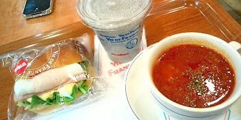 1月27日 夜勤続き・・・... 00:05 休憩1回目たん塩紅鮭おにぎりピーチティーひじきと枝豆の鶏サラダ 10:15 朝食 兼 昼食ヴィ・ド・フランスサンドスープ黒ごまバナナジュース(←これは絶対だね) 夕方から同期と映画を見にお出掛け... 映画の後は、同期と韓国料理を食べに行ってきたよ 20:50 夕食グレープフルーツジュース キムチ盛り合わせ スンドゥブ トッポギ チーズちぢみ はぁ~~うまそぉ~~.。*(〃´∀`)・.。*・
