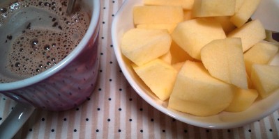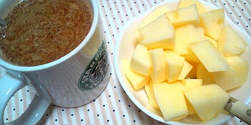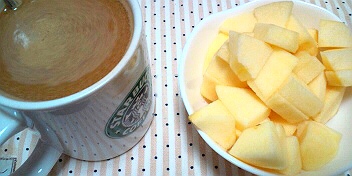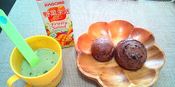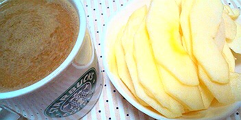 1月23日 8:50 朝食ティー天才ビーフシチューパン 9:10食後はやっぱり青汁豆乳だね 13:30 昼食 栄養満点!ニラたっぷり豆腐チヂミ by ルクルーゼ☆ 13:55今度は食後にコーピー 今日は姉と電話中継をしながらクッキングぅ~~ 赤ワインとお砂糖で煮たりんごがトッピングってとこは共通なんだけど、 minoはパンにトッピングぅ~~ 姉はケーキにトッピングぅ~~ 同じ分量で煮たはずのりんごちゃん パンとケーキとじゃ焼き時間が違うから、 焼き上がりの色も違くなった( ;~∇~)ノ minoのパンのりんごはフレッシュな赤なのに、 姉のケーキのりんごちゃんはどす黒い 姉はあえてレトロな感じに焼きあがったという事にしておいたけど、 同じりんごを使ったとは思えない見栄えであった事には間違いない minoにも「黒い」と言われてしまったよ でも姉のりんごケーキもおいしかったけどね(^◇^)