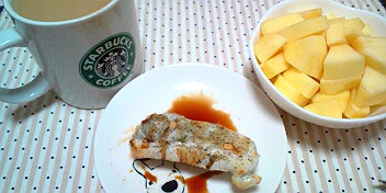 1月31日 49.4kg 今日も日勤... しかもめちゃ早起き(p≧w≦q)オッ o(≧▽≦)o ハァァァァァァ 4:20 朝食青汁豆乳野菜スープトースト(パン教室作品)+スクランブルエッグチョコパン(パン教室作品)りんごのヨーグルトかけ 6:40ほっと一息コーピータイム そしてご出勤 11:25 昼食カレーライス? 食後のおやつ チョコチップクッキー 15:15 休憩ココアクッキー2種類エースコック スープはるさめ 黒酢酸辣湯 ・・・ 119kcal 22:00スターバックス コーヒーソイキャラメルマキアート tall ・・・ 187kcal 帰宅後即爆睡(θωθ)おやすみ~ 姉は昨日もまたTom's Cafeに行ってきた 気に入るとそこばっかり行くのは家系だろうか(*´△`*) サラダ オイルベースのパスタドリア ガトーショコラアップルパイ 来週末のデザートブッフェも楽しみだ