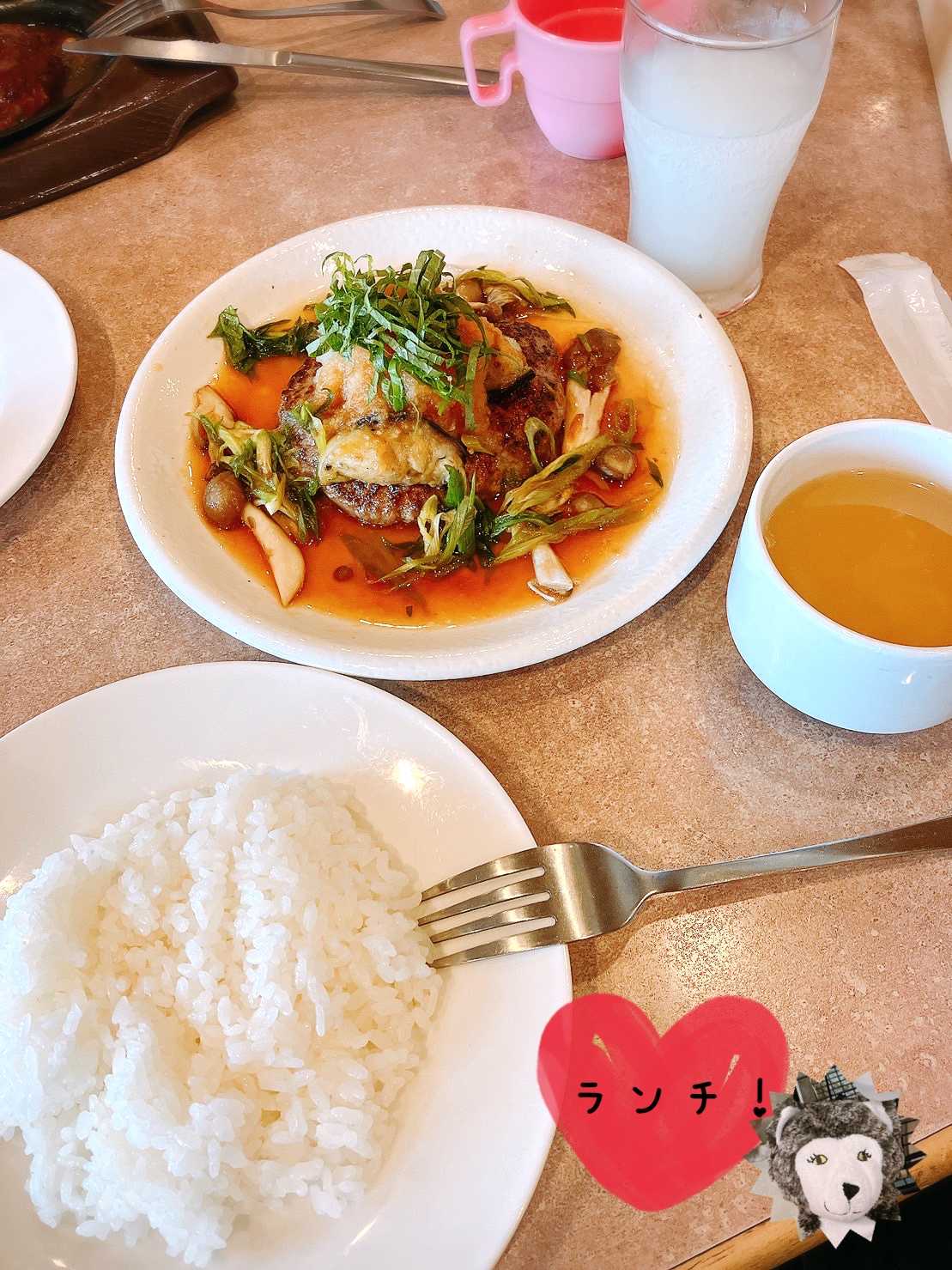 ファミレスにて和風ハンバーグ的なセット。