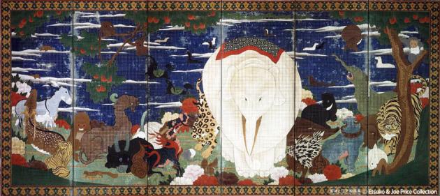 みなさん こんばんは!カツンの赤西君の留学先(駅前かな?)が気になる、みん★みんです先日の22日(ぜっこーの行楽日和)←ウザイですか?京都国立近代美術館へ11月5日まで行われているプライスコレクション若冲と江戸絵画展を観に行ってまいりました。これもやっぱり、ひとりで・・・(いと、悲しい・・)今回、どーしても見たかったのがコレ↓【鳥獣花木図屏風】方眼のマス目を埋めていく「升目描」と呼ばれる技法でマス目の数が気の遠くなるほど多い書名がないけど、この技法から若冲の作品と考えられている・・・らしい確か、宇多田ヒカルの「SAKURAドロップス」のPVにも使われていたと思います ここ最近テレビとかで、若冲の作品が取り上げられることが多いので、この絵の前には3重4重と人がいてましたが、ここは大阪根性で最前列ゲットし、じっくり見ました。やっぱり、実際目の前にするとスゴイわぁ~近くで見ると、とにかく細かいっ!彩色も色あせることなくキレイ!日本画を超越し、どことなく海外の宗教的な感じの作品にも見えました(白い象のせいかな?)そしてもう1つ、若冲らしい作品コレ↓【紫陽花双鶏図】紫陽花の花前でガンを飛ばしあう鶏2羽この絵のクリアファイル・・・・買っちゃいましたぁ~今回、【虎】を描いた作品が多かったんですが、当時日本に【虎】はおらず中国の虎を描いた作品を模写していたようですが、実際見たことの無いものを描くというのは難しいのか、描く人によって【虎】のイメージが全然違うんですですねぇ~芸術の秋、満喫してきました「眼福でございました」そして、帰りの京阪三条駅で仕入れたチラシよりこんなん見つけました。コレ!紅葉がキレイに色づく頃、また京都へ行こう・・・そしてやっぱり、ひとり?