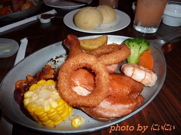 21日インレポの続きです。10時に合わせて、ダイヤモンドホースショーへ向かいました。案内された席は、ステージの一番前の右側の席。早速、ウエルカムドリンク等がテーブルにセット済み。ウエルカムドリンクは、カルピス・野菜ジュースにゼリーが入った飲み物で美味しくいただきました。そして、メインの食事はこちらこれ一人前です。ボリュームのあるランチでした。そして、息子お気に入りのジェシーやウッディーが登場。 ブルズアイもいました。最近は、ほぼ毎日トイストーリを息子が見ているので気になったことが一つ。ウッディー・ブルズアイの靴裏には「ANDY」と書いてあるか・・・・書いていませんでした楽しいランチショーも1時間で終わり満腹になった我々は11時にレストランを後にして1回目のイースターをレストラン前にて鑑賞しました。
