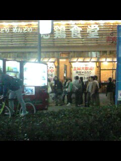 会社に戻る途中、スゴい行列を発見しました。 なにかと思えば鳥料理の店… 五円で食べ放題だそうな…