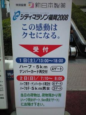 昨日、仲間とも相談して、とりあえず 「行ける所まで行こう!」 と参加を決意。しかし、朝起きると、やっぱり喉は痛いし鼻水はたれるし・・・ 4時に起床して、体を少しずつ起こす。 5時には「うどん」を作って食べた。 5時半 ストレッチ、足の爪の手入れなど・・・ をして、着替えなど準備 6時半 ラジオ体操 7時前 出発 一歩一歩 体を伸ばしながら 7時10分 ドーム到着 変なキャラクターが居る な 何? 集合時間の7時20分、徐々に仲間が集まり、ユニホームに着替える 赤い鶴 に 金の文字 披露宴の包装紙みたい 受付を見ながらドームへ 中に入って、ビニール袋を貰うと、荷物を入れて自分のシールを張る。そして、客席に入ってボランティアの方に預けると、人工芝に降りてサービスのアクエリアスを一杯。 若干の緊張感、整列が始まる・・・ さぁ 出発!! 太鼓が鳴り始めた!! と、思ったら、スタート地点までジョギングで進むらしい ジョギングしていると、スタートの合図! あらら スタート地点まで5分はかかったな。 やっと、スタート地点 市長さんが へらへら笑っている。 初めてのレース、風邪ひいてる事も忘れて、快調に走り始めたものの、前にも後ろにも人だらけ、しかも皆ペースが違って走り難いったら ありゃしない。 5キロ、 6キロ、 そこで、仲間を発見して、同伴走行となった。 12キロ前後で強烈に足がだるくなり、自分の足じゃないみたい・・・なんとか前後に動かして、進んでいた。 13キロくらいまで、仲間と一緒に走ったが、給水で遅れをとり、30メートルほどの差がつくと、もう追いつく気力もなかった。 しかし、見えなくならないように一生懸命ついて行く、彼は去年も完走しているので、彼について行けば間違いないはず!! しばらく、走ると、完全に先に行ってるはずだった、若手メンバーが「ぜぃぜい」言いながら近づいてきた。 「もう限界です!!」 「情けナイ ヤツ。 俺について来い!!」 数百メートル同伴走行したが、後ろに行ってしまった。 17キロくらいからは、もう気力だけ。とにかく、手を振って、足を出す。頑張ってるつもりではないが、前の人たちがボロボロ後ろに下がって行く・・・ 18キロ過ぎ、気力も限界が近づき、フラフラ 何度も「もうダメだ!」と思ったが、なんとか、19キロに到着。 なんと長い1キロだろう なんと長い6分だろう・・・ しかし、ここで時計を見ると、1時間46分過ぎ 「ん? ちょっと頑張れば、2時間以内にゴールできるぞ!」 必死になって、腕を振り続けスピードアップ!! なんと、前方を走っていた仲間に追いついてしまった。残り1キロで追い抜くと、更にスピードを維持したまま走る。 ホントに最後はエネルギー切れで 倒れそうになりながらもドームを一周して ゴール! なんと、初挑戦で、しかも風邪の私が、仲間の中ではトップでゴールしてしまった。 「ははははっ!!」 2時間3分22秒 ネットタイム 1時間58分43秒でした。 なせば成る。何事も、 成らぬは ボソボソ・・・