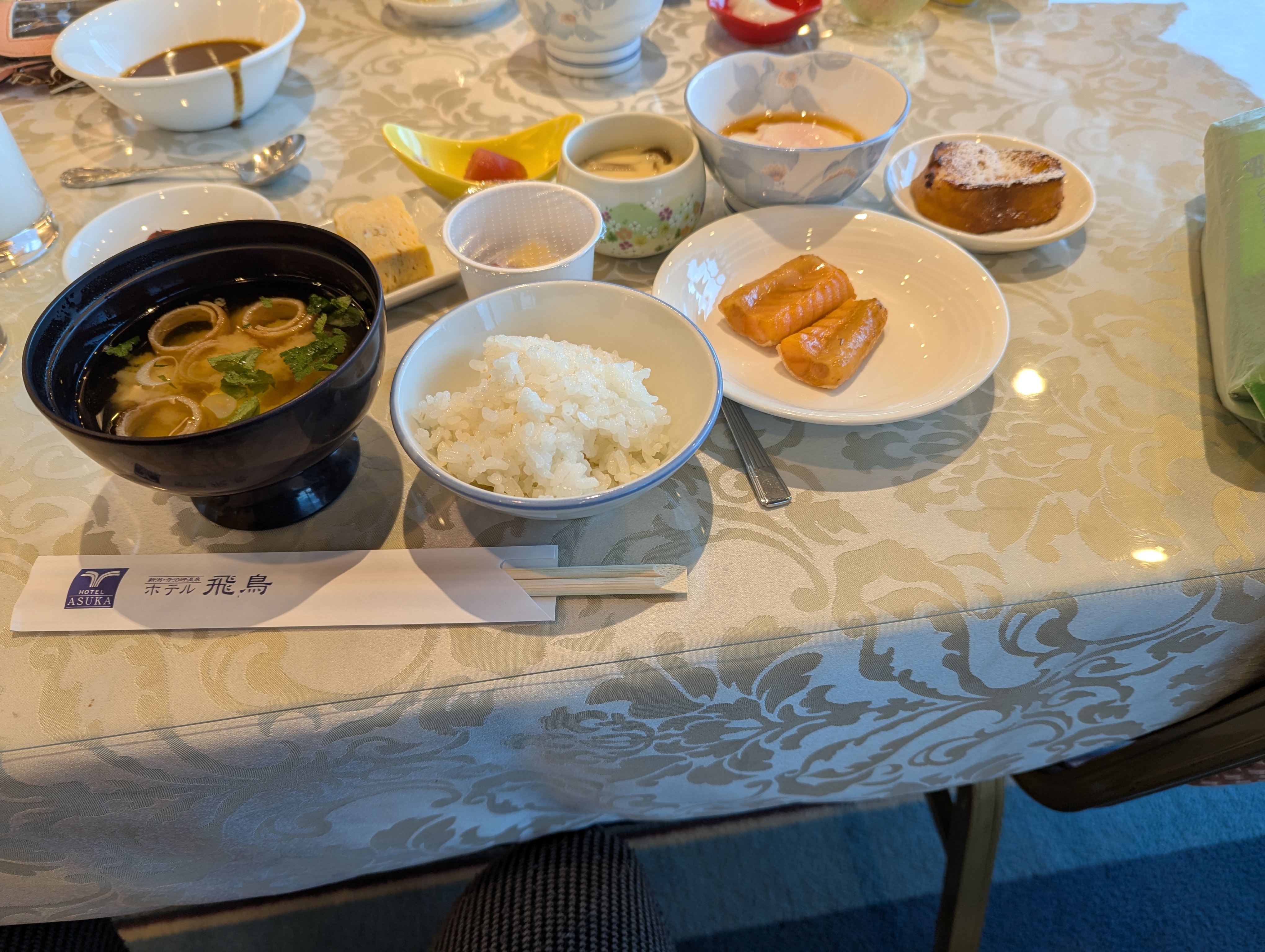 今回はホテル飛鳥(あすか)です。調べたら2011年に泊まったところです。その時は母も一緒でした。ホテル前には太古の湯ありましたが今は建設業の方が使ってるようです。
