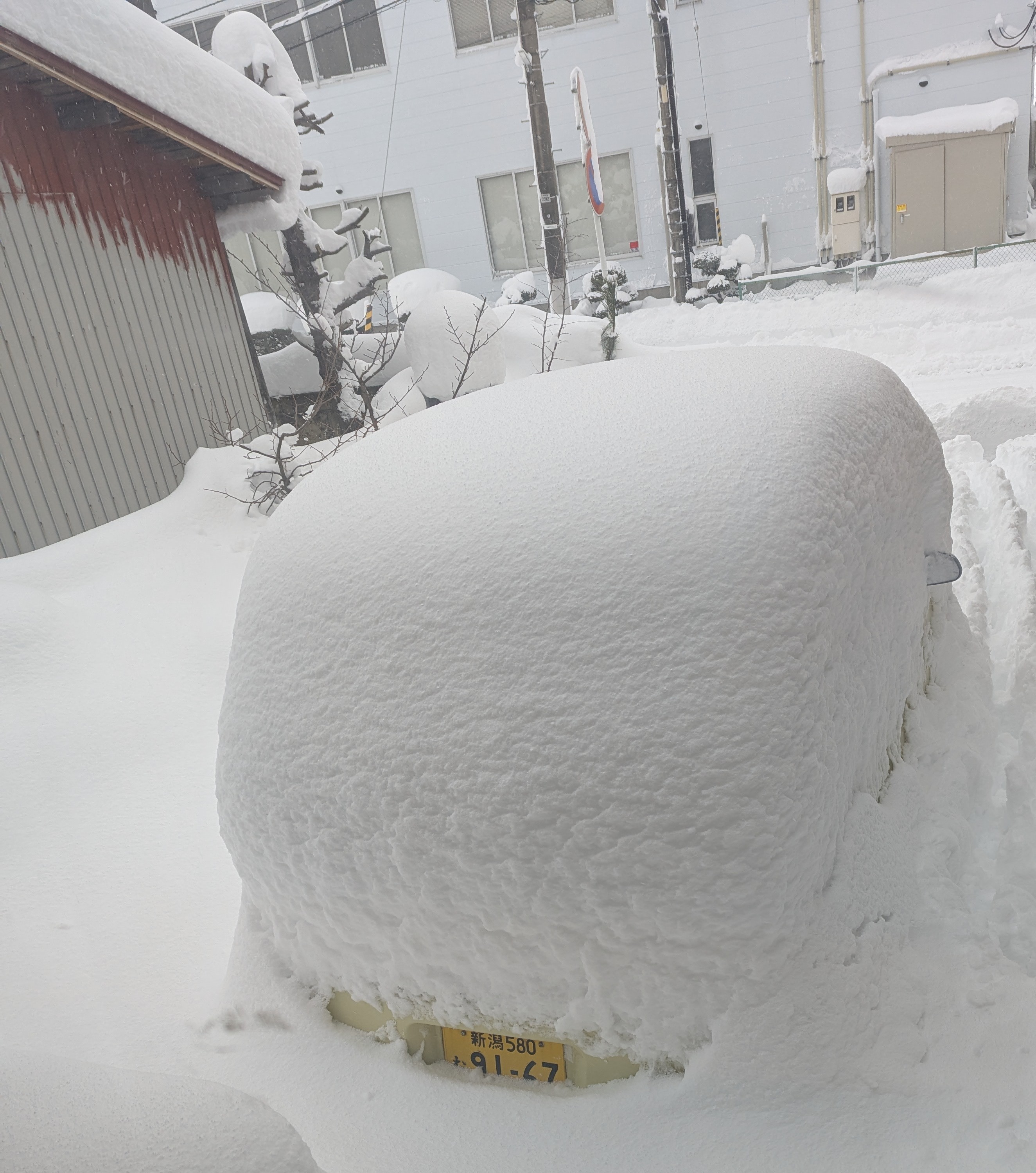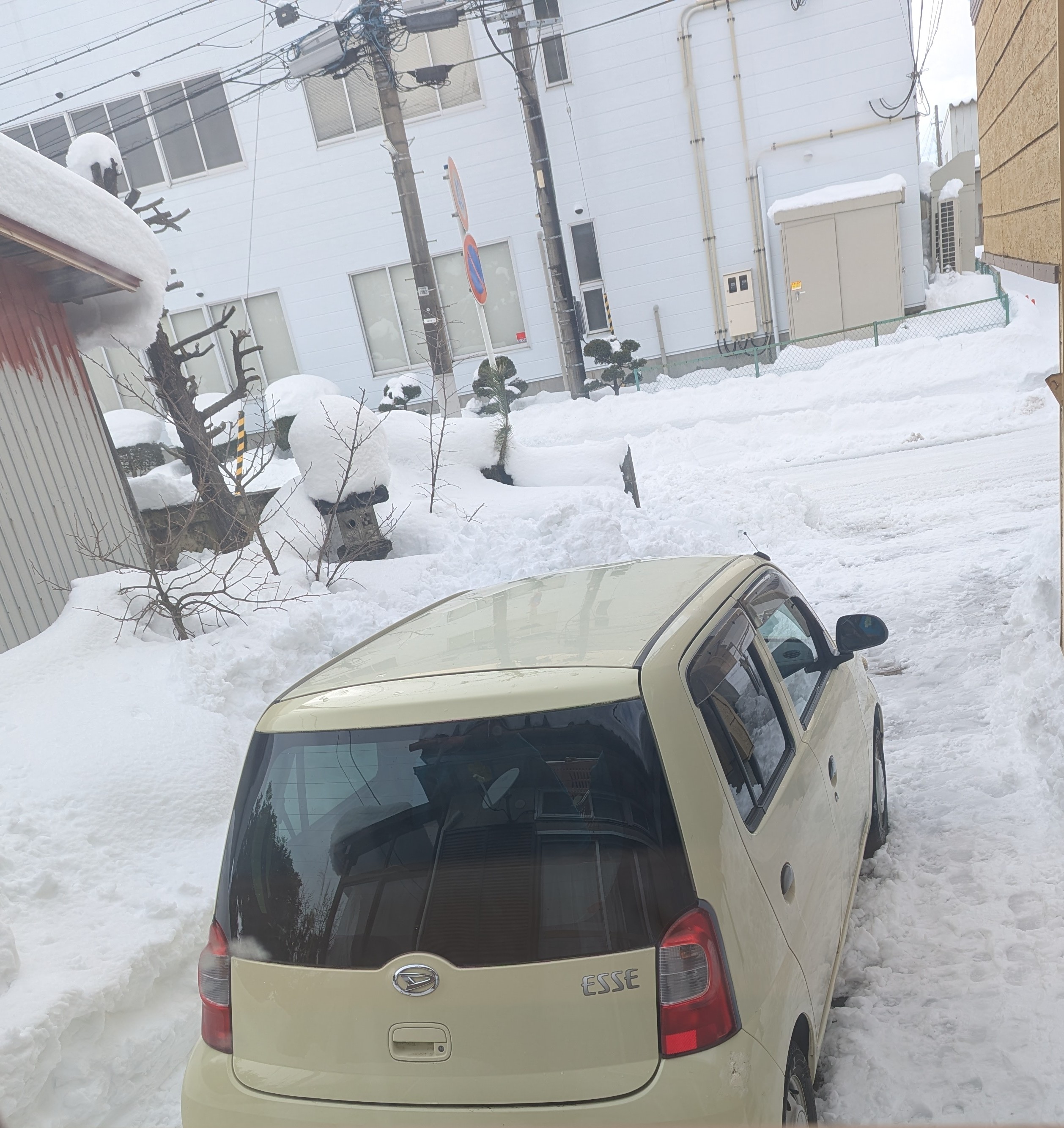 驚いてシャッター開けたらすごい雪なんでー さっきまで雪なかったじゃん。それから慌てて雪かきなんとか車入れるまでにしだ。