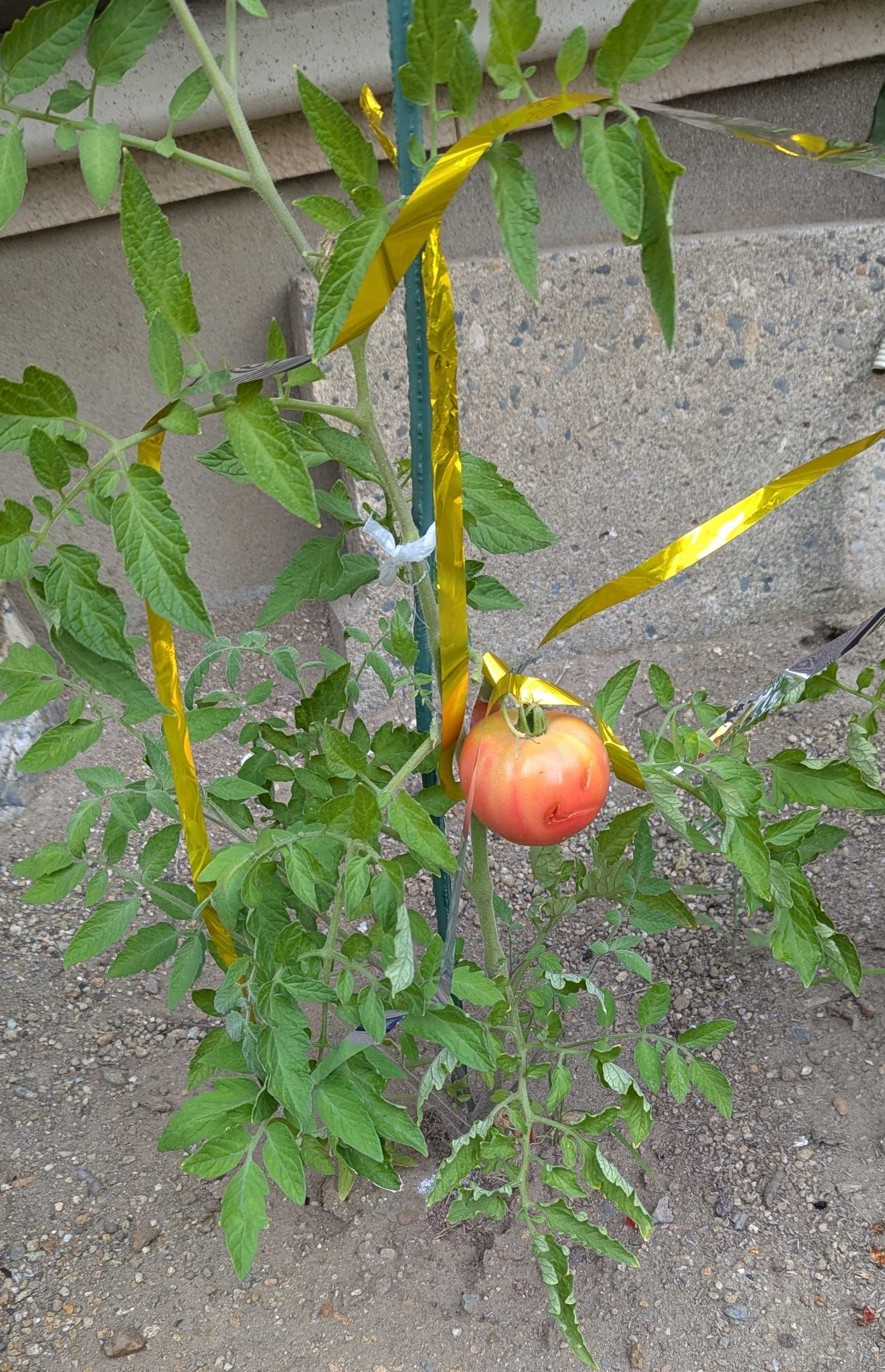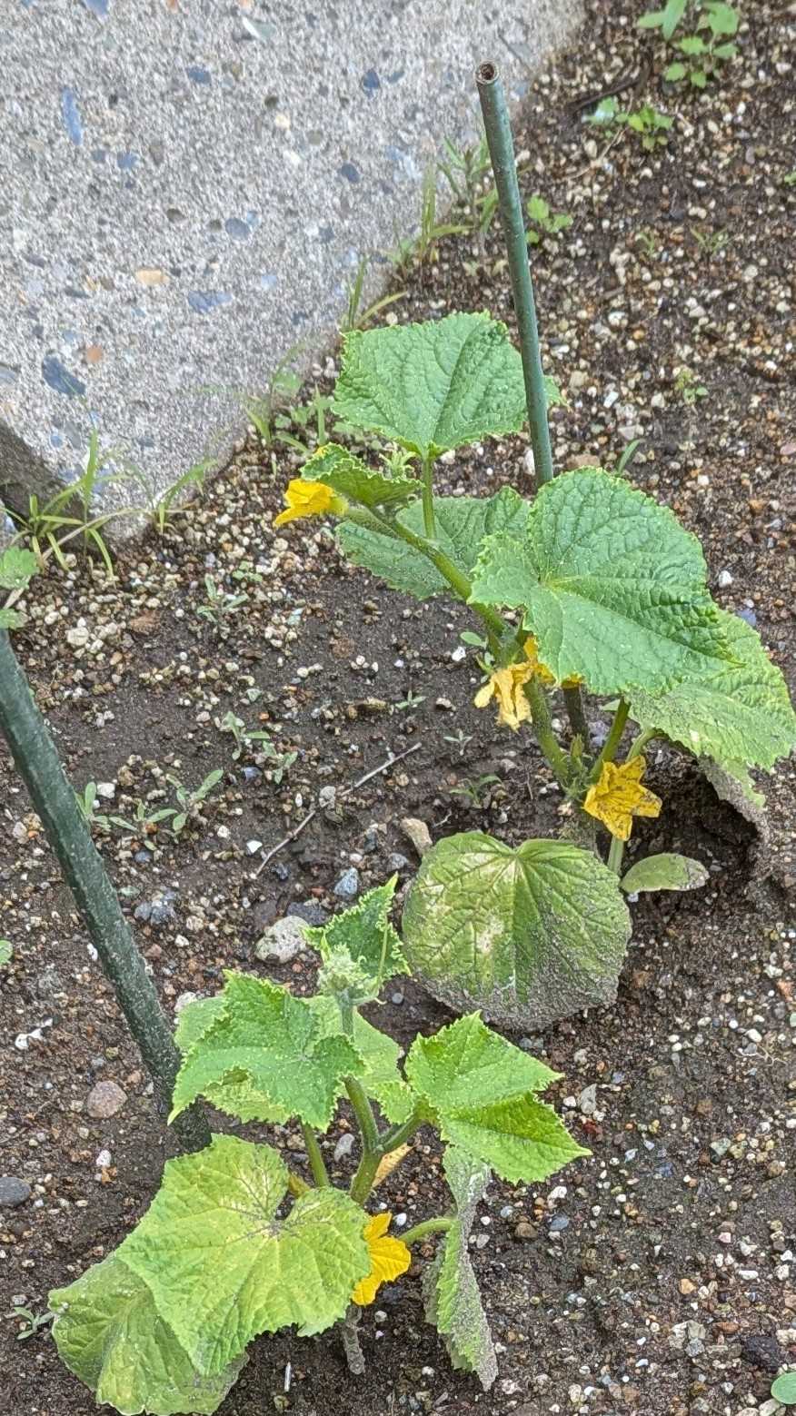 おはようございます😊☀️昨日からスマホがおかしくて広告、チックトックに自然と代わりどうしょうどうしょうと電話屋さんに予約しました。それが自然と直りキャンセルしました。なんだったんでしょうね。やっと赤くなったトマト4つそれが1つしかないんです。昨日娘がテープつけてくれましたが残ってるトマトも傷ついてました🥹せっかく赤くなったのにどうもカラスらしいです。トマト🍅の隣にはきゅうり🥒こちらは全然大きくなりません。カラスって見てるんですね。腹立つ😡いいこと無しです。でも近所の人とランチしてきました。サイゼリアでした。朝あった最後のトマトもなくなってました。来年から作るのやめました。だって狙われるもん