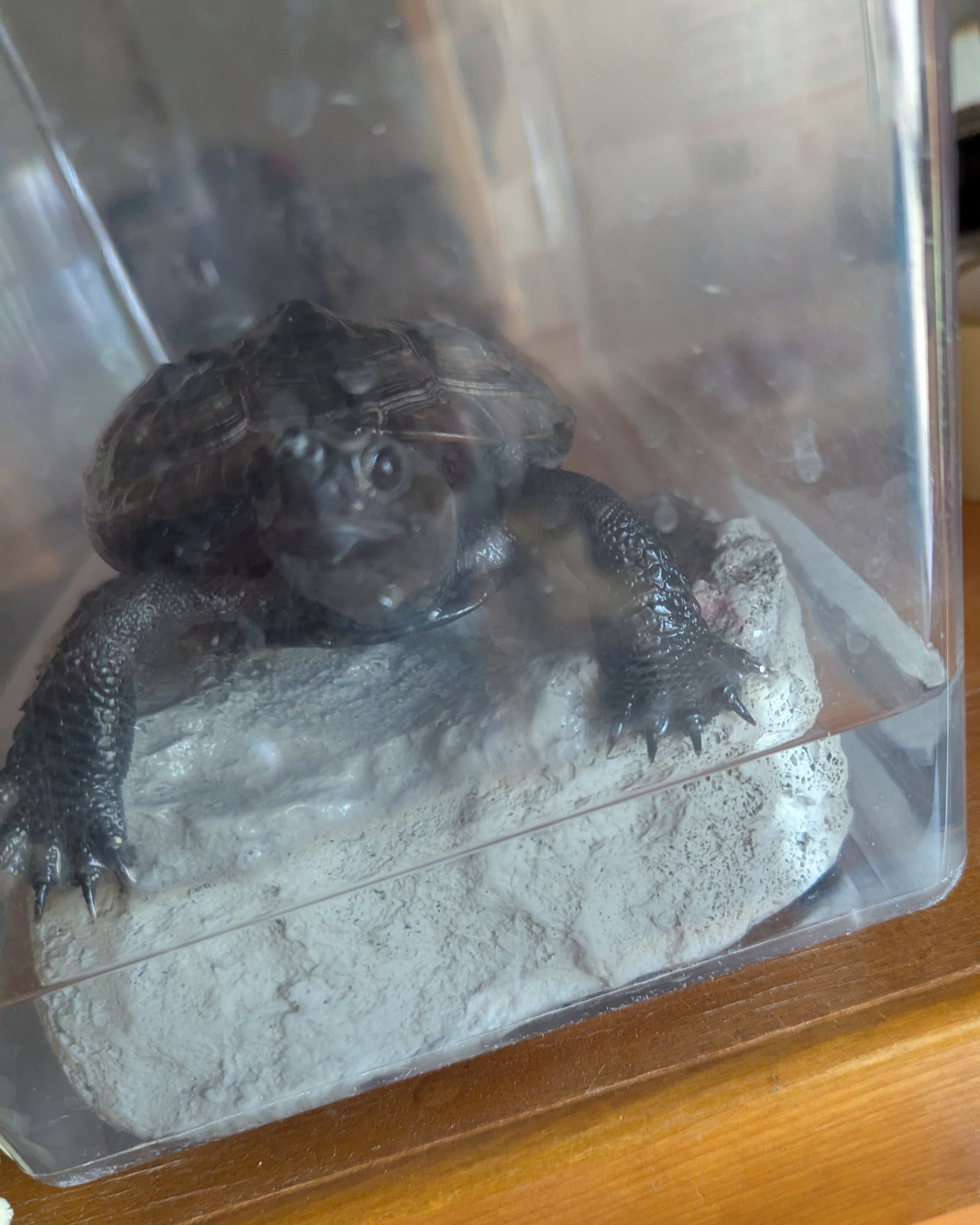 こんにちは😊☁️雨降りそうです。一ヶ月前に亀さん起きました。昨日から餌あげしました。冬眠前と起きて一ヶ月は餌あげれません。でも寝てる間に一回り大きくなってました。これではあまりわかりませんが👀洗っ時に背中が大きい。だからといって入れ物大きくすると比例してもっと大きくなると言われました。だからこのままのケースにします。まだ動けるからね。先日友達とコメダ珈琲でランチしてきました。