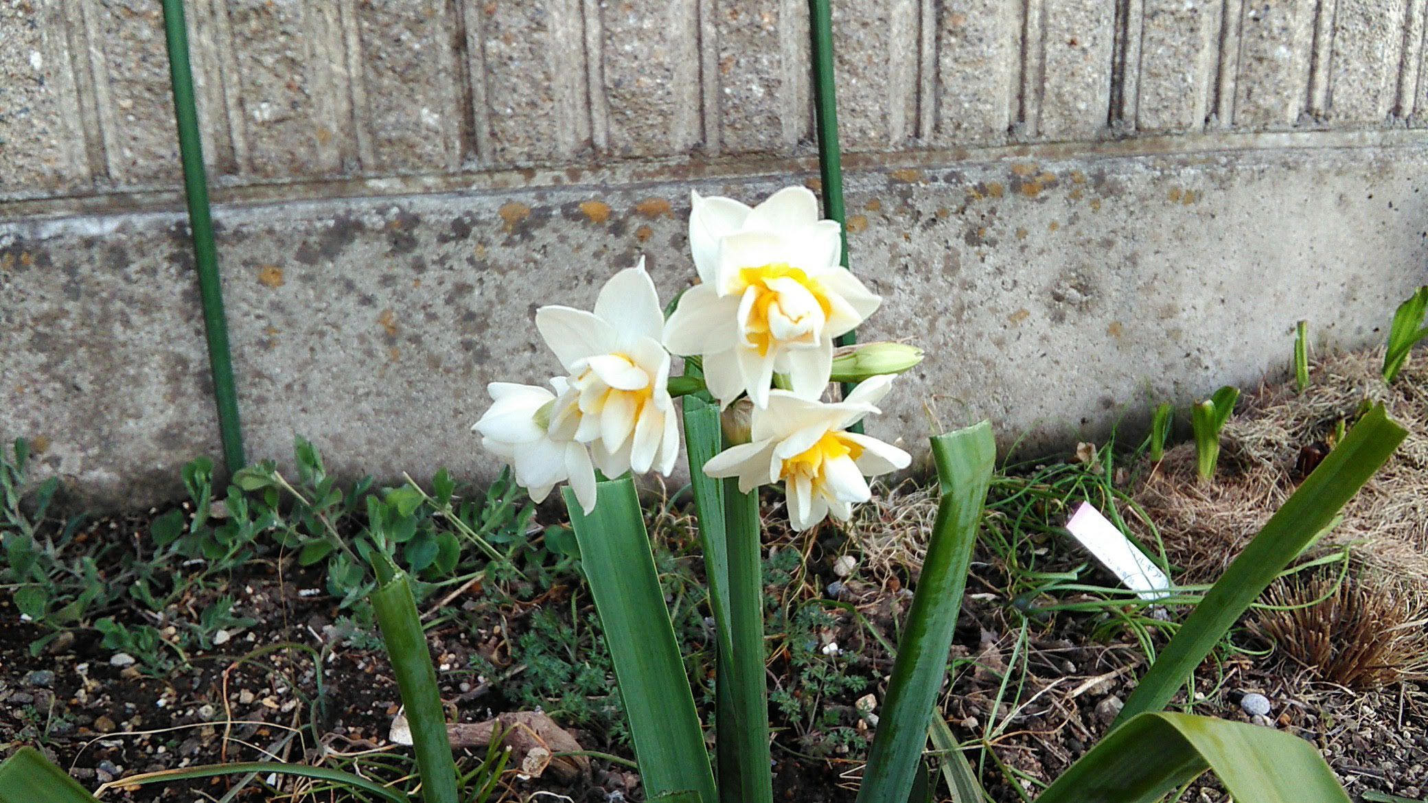 いただきものなので、正式な名前はわかりませんが、うちの庭で春にまともに咲いたのは初めてです。