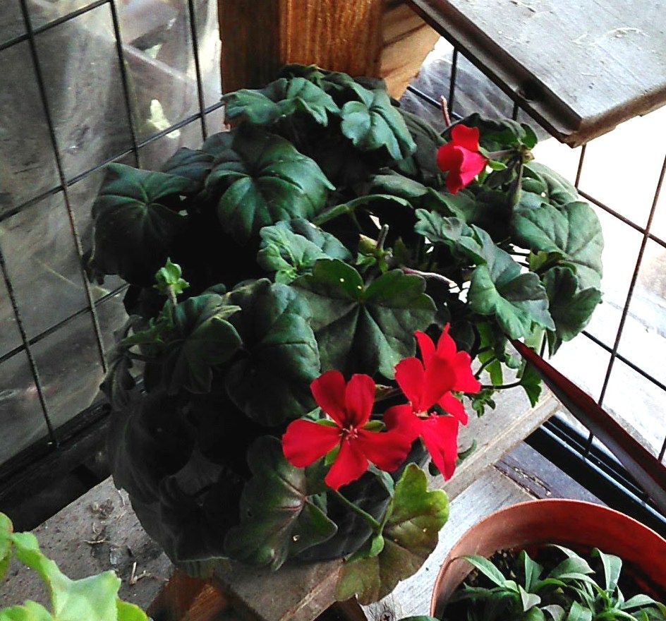 ↓温室の中では、いつのまにかゼラニウム・カリエンテファイヤーが咲いていました。