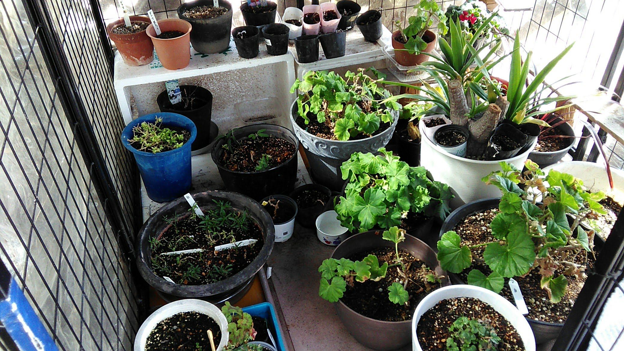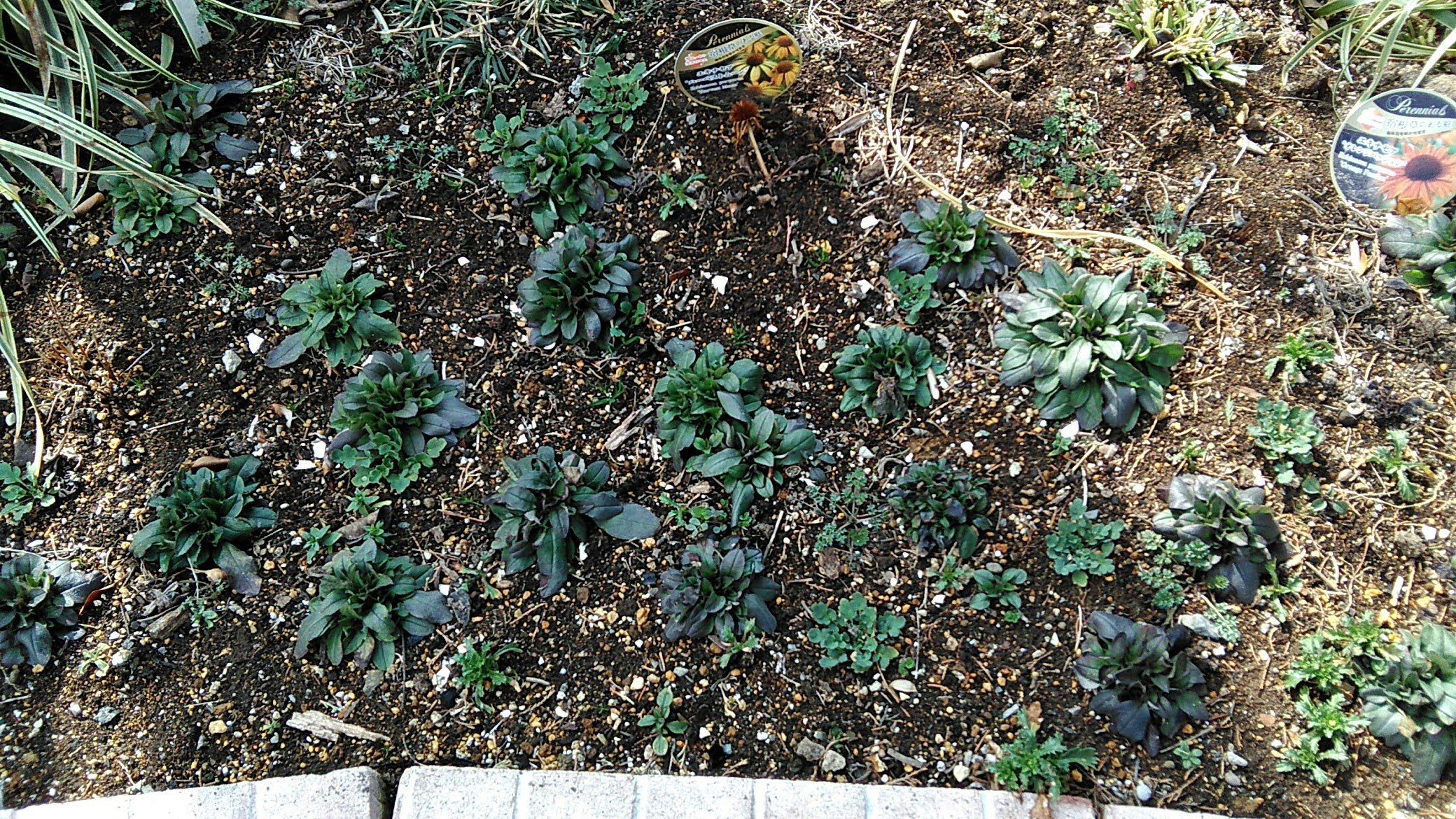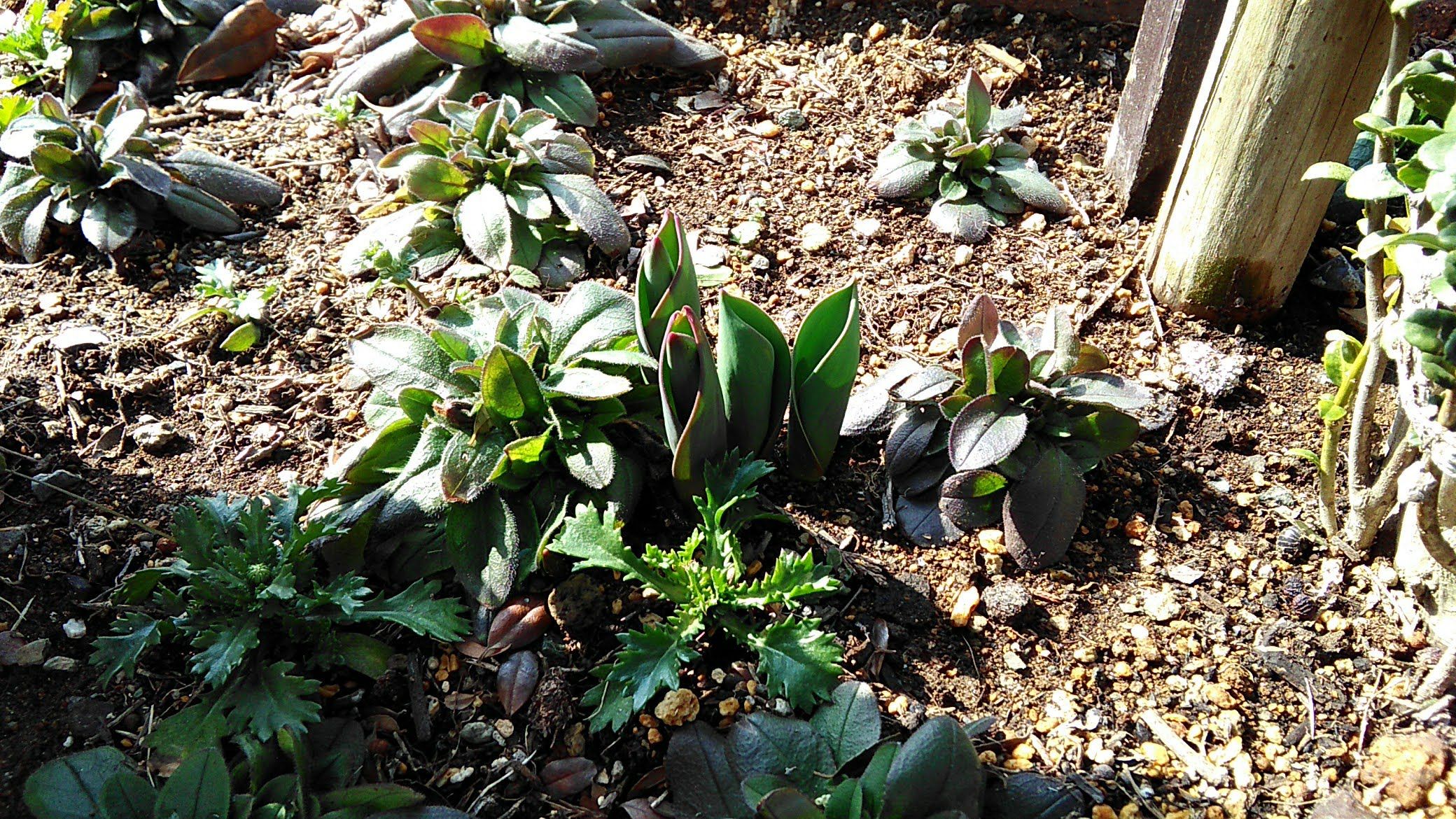 ↓真冬はほとんど紫色(というより黒)になっていた忘れな草も、少しづつ緑になってきました。