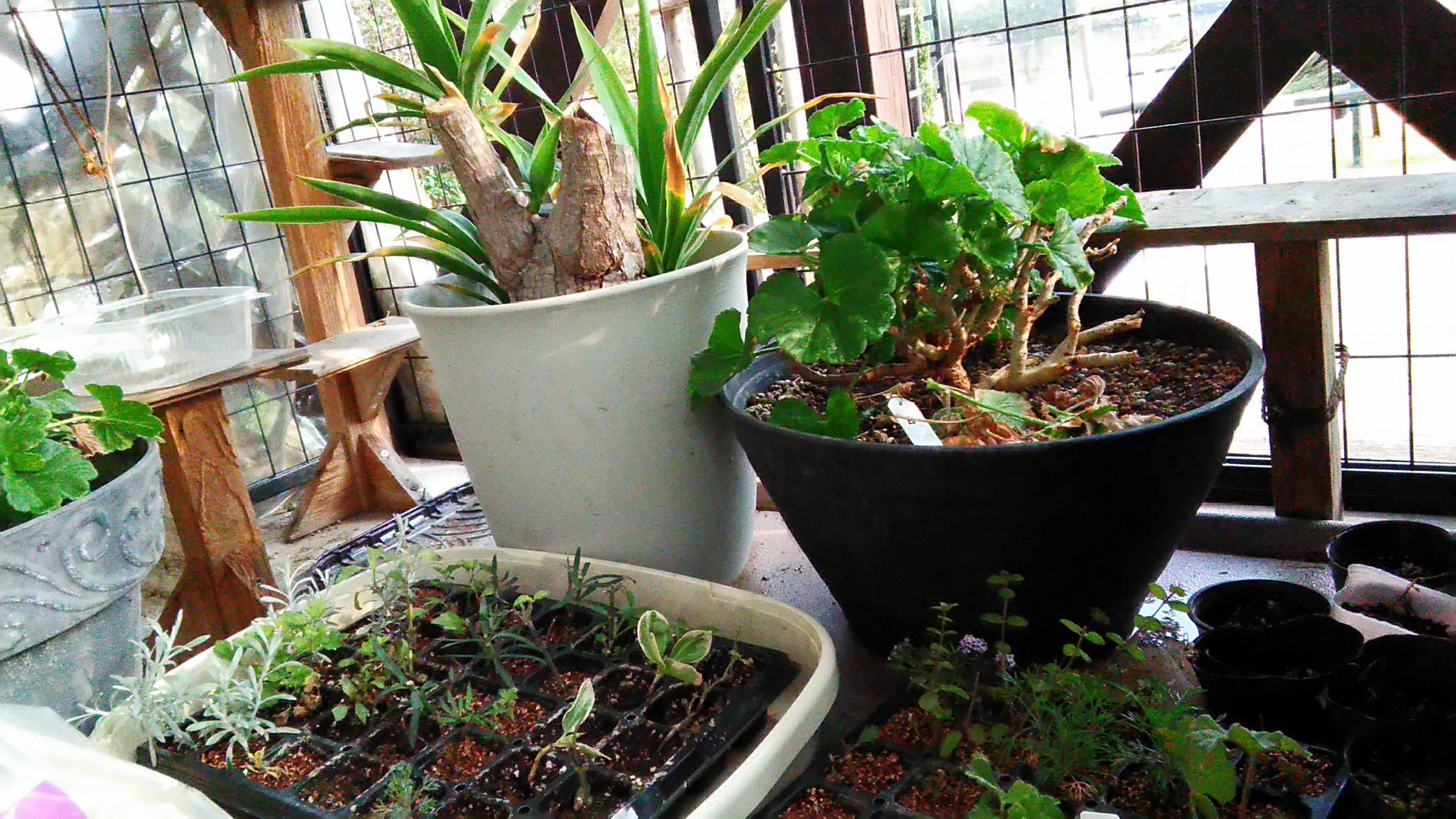 代わりに室内で育てていた挿し芽の苗達を温室へ。やっと室内がスッキリしました。