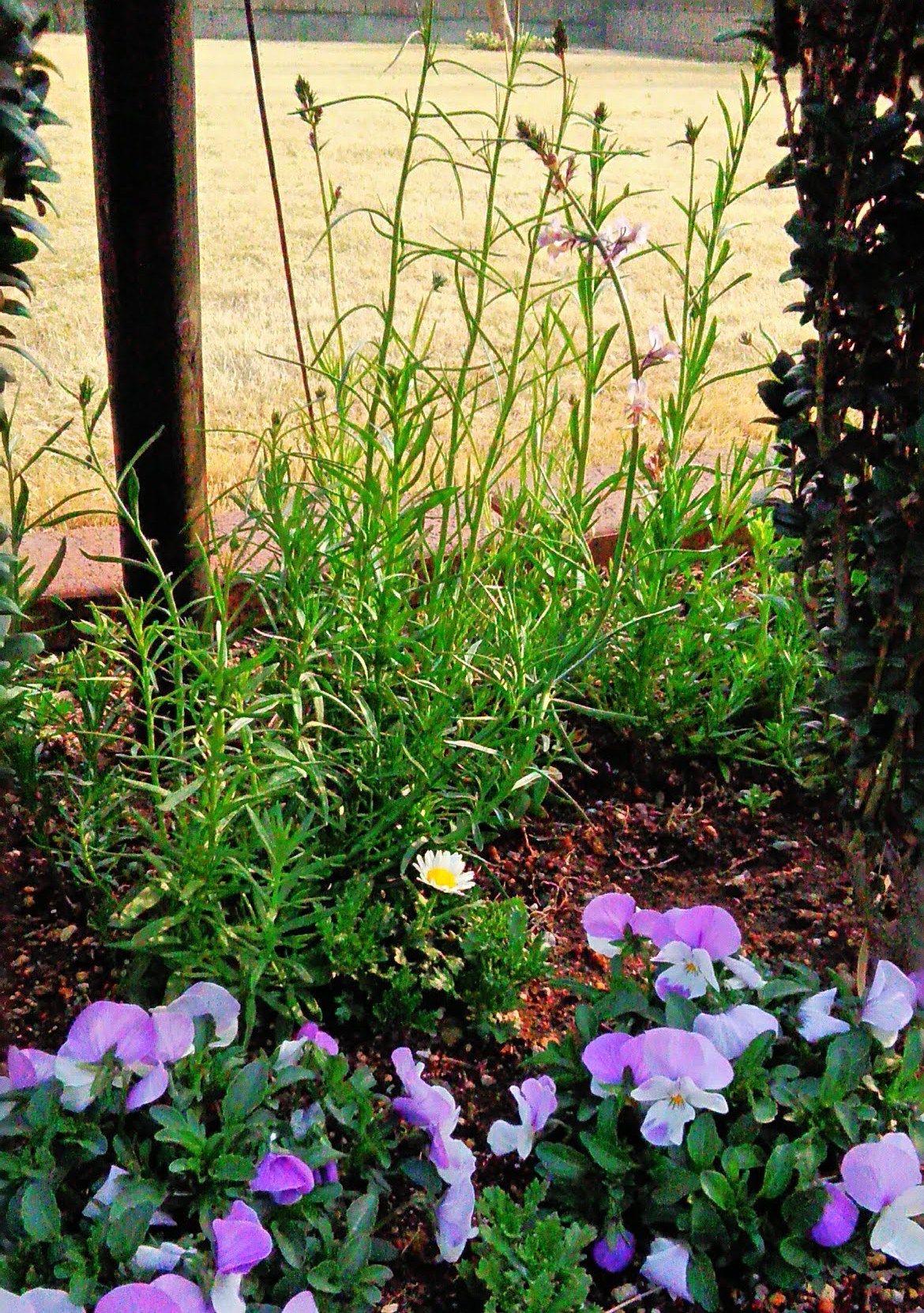 ↓手前のビオラは九月初旬に種まきしたものです。やっとここまでになりました。