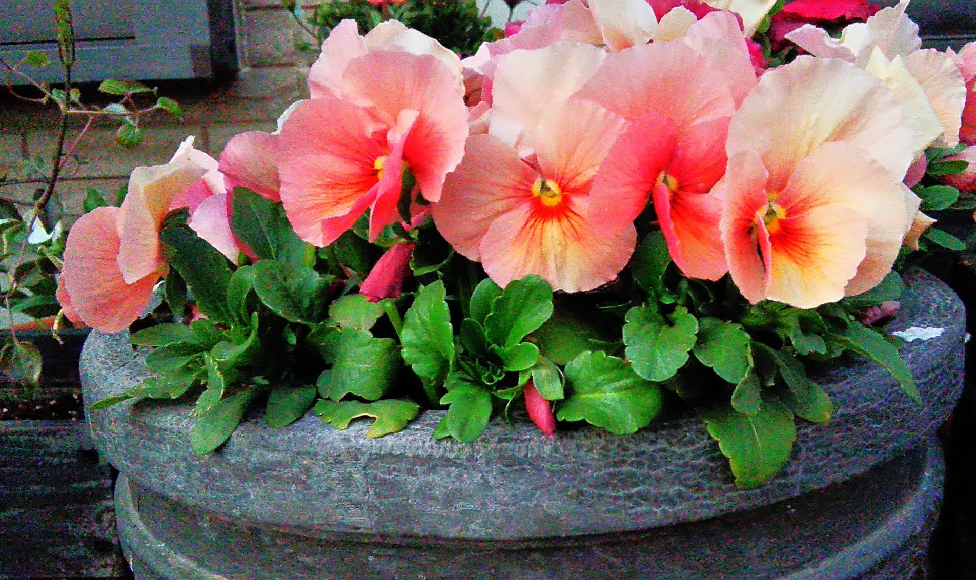 ↓パンジー・キューティアプリコットは、ここだけ見ると可愛いのですが、実際はぎゅうぎゅうとおしくらまんじゅう状態。大きな花が押されてつぶれ綺麗ではないので、全体写真がアップできません。しょんぼり
