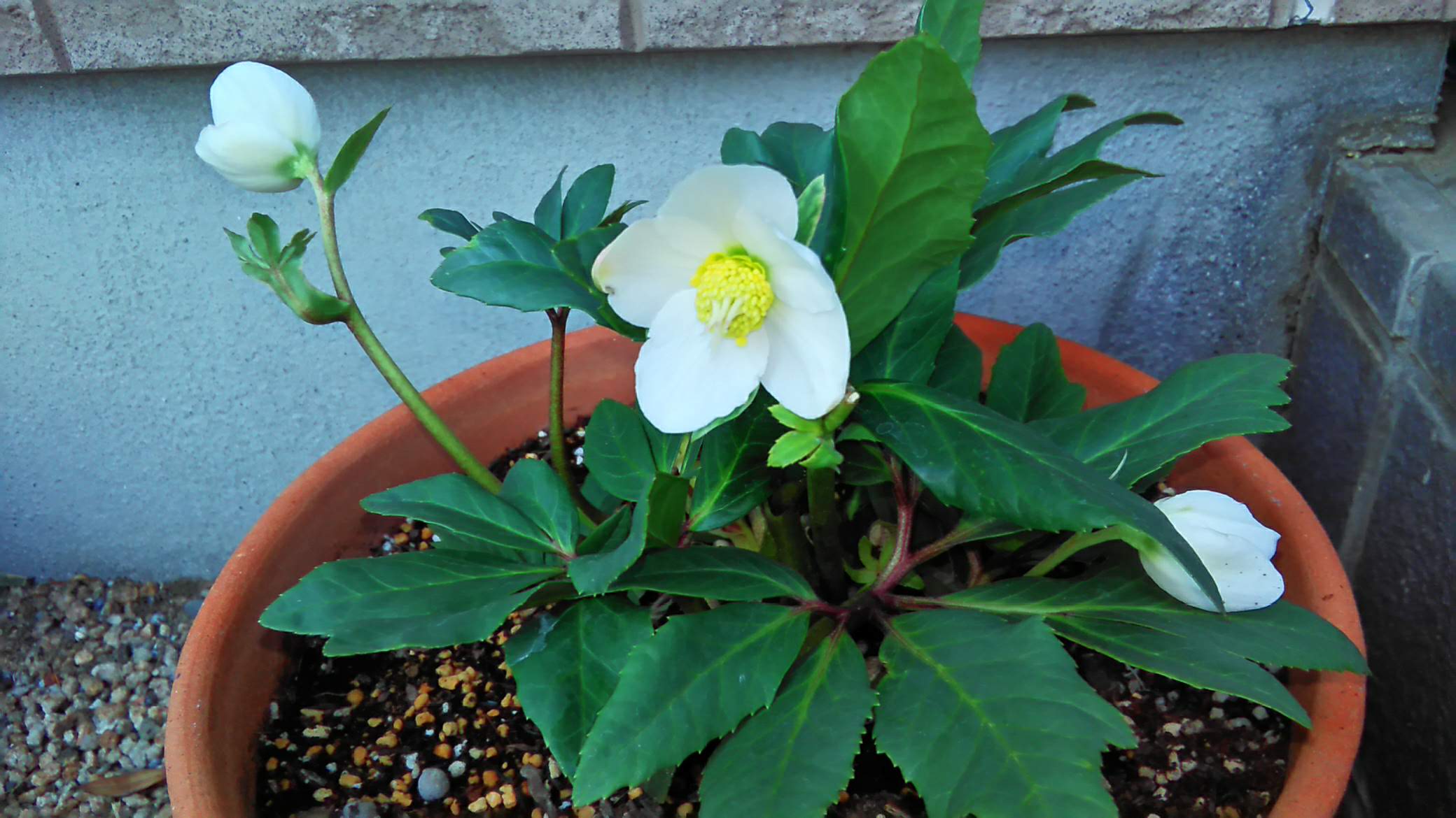 ↓もう0℃以下になることはないと思い、簡易温室のカバーを外して、鉢を半分ほど外へ出しました。