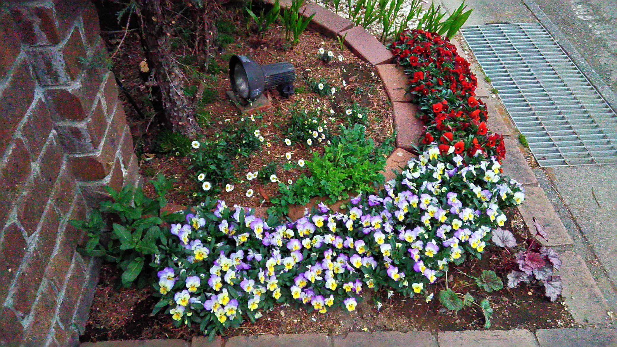 ↓ここには、ヒューケラの回りに白いビオラが3株植わっていて、ぎゅうぎゅうでした。