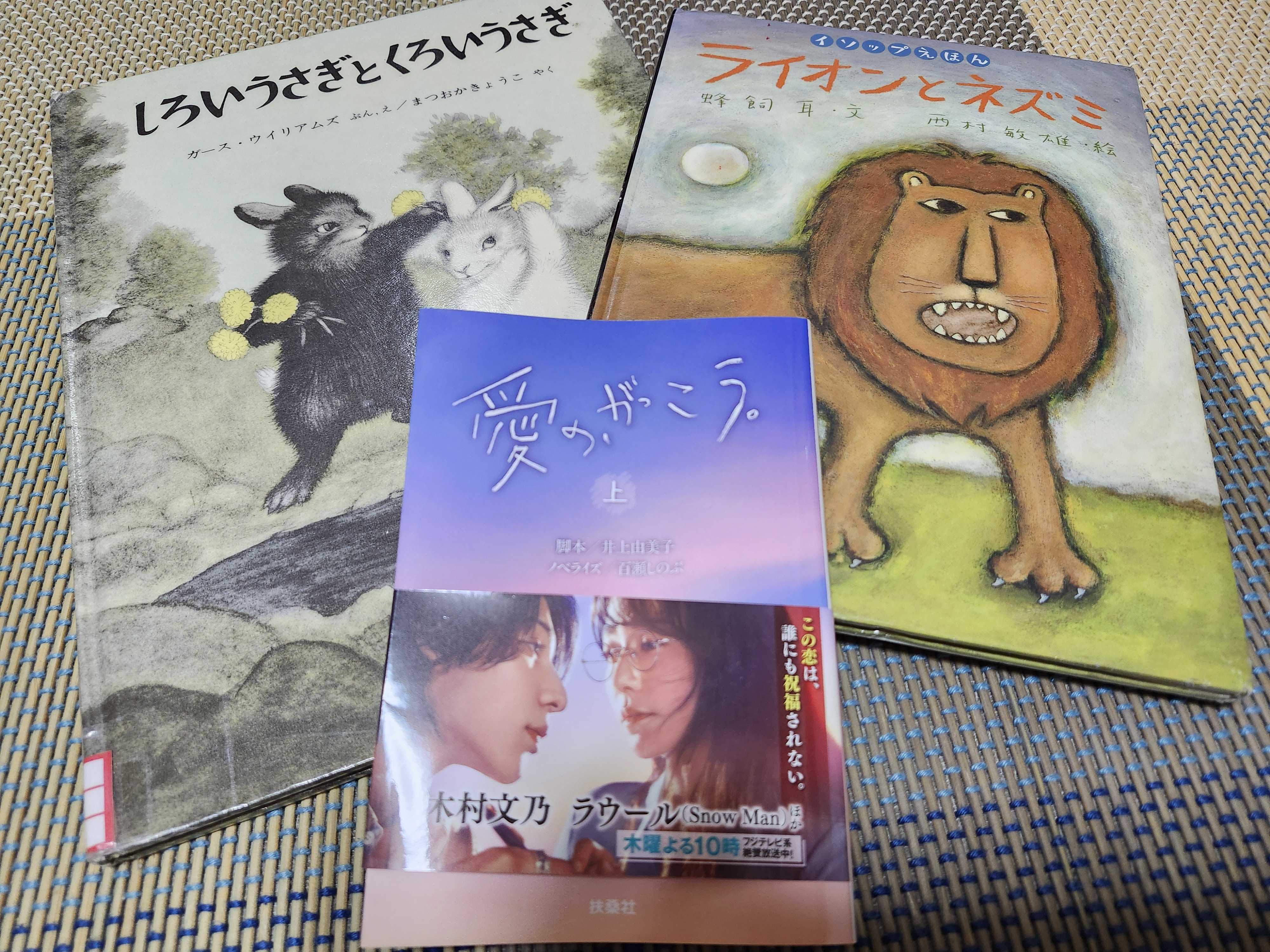 ラウールくんの初出演ドラマ愛の、がっこう。に影響されてノベライズ本買って絵本を図書館で借りてきた~💓愛の、がっこう。は高校教師とホストのピュアなラブストーリー!ただの恋愛ドラマじゃないのは、昼顔の脚本家、井上由美子さん、演出も西谷弘さんという名プロデューサーに託されていることでわかる。とにかく、セリフも、その背景も美しい!6話なんて、映画か?って、ツッコミたくなった。主演の木村文乃さんのかわいらしさ、ラウールくん演じるホストのカヲルと本名鷹森大雅の使い分けの演技力に毎回、心を動かされる。彼の努力の賜物。ロケ地も三浦海岸ということで、きっと、ファンの聖地に!!カヲルは毒親に育てられ、普通の生活はできるけど、字が書けない読めないという障害があるという役。小学校は3年生まで、中学校は3日しか行っていない。本当は行きたかったとドラマの中で告白していた。母親は男を次々とっかえひっかえ、いわゆる毒親、カヲルは父親の名前も知らない時期もあったとか。毒親の母親から、小学生の子供が、あんたって、ほんとバカね。って呆れられる。親から、そんな言葉を浴びるなんてほんとに辛い人生を送ってきたのだと思う。(親もカヲル自身もはその障害のことを知らない)もっと学校や社会がそういう子供(普通に字を書いたり読んだりできない)や親に向き合っていれば、ホストという職業以外にも、世界が広がっていたのにと思うと、親や学校や社会が、その子の可能性を潰したといっても過言ではないと思う。今現在も、クラスに2,3人、字か書けない読めない子供が存在するらしい。このドラマを受けて、これからの未来は、そういう子供たちへの未来の可能性を広げて欲しいなぁ。そういう社会的な問題点を風刺しているのも、このドラマならではなのだと思う。教師とホスト職業や育った環境で閉ざされる壁それをとっぱらえばただの人間ただの男女そして、ひとりひとりがそれぞれ素敵なヒトヒトとしての愛をやっと見つけた2人に幸せになって欲しいと願ってる。【しろいうさぎとくろいうさぎ】【ライオンとネズミ】この絵本はドラマの中ででてくる2冊。読んでみたら、どちらもハッピーエンド。この本が伏せんで、ハッピーエンドで最終回を迎えられますように。Netflixに「愛の、がっこう。」全話みれますので、見てない方は是非、ご覧ください♪木村文乃さん、ラウールくんの演技、最高です❤そして、添えられる音楽もとっても素敵です♪主題歌は、徳永英明さんの息子さん、レイニが歌っています。こちらもとても素敵です♪SpotifyでSpiral feat. Yura聞いてみてくださいね♪今日もありがとう。愛の、がっこう。(上) (扶桑社文庫) [ 井上 由美子 ]愛の、がっこう(下) (扶桑社文庫) [ 井上 由美子 ]▼CD / 菅野祐悟 / フジテレビ系木曜劇場「愛の、がっこう。」オリジナルサウンドトラック / PCCR-793[8/27]発売しろいうさぎとくろいうさぎ (世界傑作絵本シリーズ) [ ガース・ウィリアムズ ]ライオンとネズミ イソップえほん / アイソポス 【絵本】
