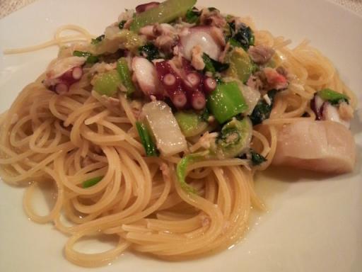 取り急ぎ、本日のランチハンズまで行く用事があったのでLa Cucinaで日替わりパスタ(ズワイガニ・ツナ・タコ・ホタテ・白菜・チンゲンサイ等塩味)これに、サラダ+コーヒーで1000円です。この味でこれならOKでしょうね(^-^)