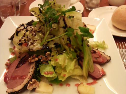 パスタにしようか悩んだのだけど、生野菜が食べたくて・・・鴨のローストとリンゴのサラダリンゴはほんのお飾り程度でしたね(^-^;;明日は本日見つけて気になったお店にするかも。そう言えば、BikinI(スペル間違っているかも)タパで近日中に「シェフのきまぐれサラダ」というランチメニューが増えるらしい。どんなサラダ(どれだけの量)か楽しみです。(^-^)