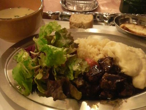 なんとなく、まだエンジンがかからないです(単なるサボリ癖?)本日のランチは、年末に満員で入れなかった、カウベルにサイコロステーキランチです。オージービーフで、赤ワインソースがかかっています。うーん、ちょっと肉は硬かったですね(^-^;ワンプレートランチで、スープ、ミニデザート、コーヒーがついて1500円日替わりや他のメニューは1000円でありますこれって、アフタヌーンティーのパスタランチ(1155~1365円)と比べると安いと思いますでも、そう頻繁には来る気には・・・やはり、牛肉が重いです(^-^;