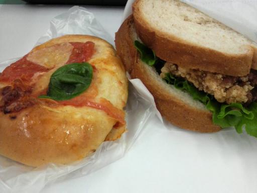 毎週金曜日はお稽古日なのでわりと覚えているのです(笑)なんか、「雨」の割合が金曜日って多いんですよでもって、本日も雨今朝、起きた時(6時)には雪混じりの雨でした雨よりも雪の方が降っているときはいいけど積もってしまうと、都内の交通機関に影響がでるからね~本日のランチは雨とわかっていたので買ってきましたカフェデンマルクの、竜田揚げサンド ピザマルゲリータデザートにおせんべい食べました(笑)三時にはカステラが・・・・・・現在、満腹です~(^-^;;