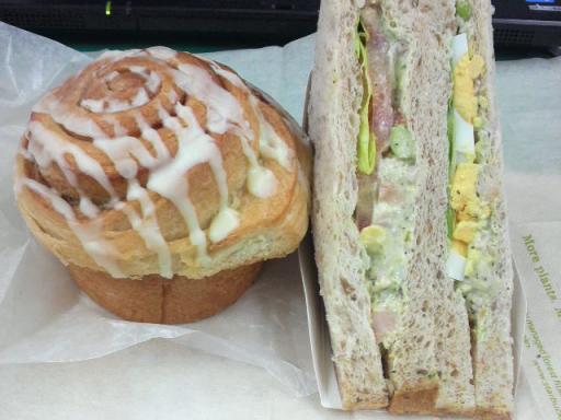 昨夜からの雨は久しぶりの「お湿り」と嬉しい事なのですが・・・やはり、寒いですね(^-^;;インフルエンザの部長は本日、お休みです♪みんな、ホッとしています(笑)なんでも、部長のインフルエンザはB型とか・・・・本日のランチは、雨で寒そうでしたので朝、買って来てしまいましたチキンサラダサンドとシナモンロール1月下旬~2月上旬がインフルエンザの流行のピークとか皆さん、頑張りましょうね~