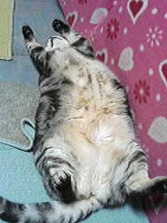 最近のクッキーはたべてばかり今食べたかと思うと又餌の所へひきりなしついにこの体型です。いつもごろごろしてますついに1mあまりの所を上がることも不可能になってしまった少し減らし気味にしてもおねだりしてスリすりする次第!無視すると壁・ソファなどをがりがりすること仕切り・・・どうしたら元の体型になるかしら・・考えて餌もヘルシーにしてるんだけどな