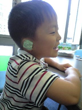 夕方にまたまたこども病院へ行ってきました。今回はこないだ補聴器屋さんで作ったイヤーモールドを補聴器につけて、実際に耳につけてみました。まだ購入ではなく貸し出してもらった補聴器でしばらく試聴するようです。補聴器をつけて聴力検査をすると、20dB程度聞こえやすくなっているようです。初めは1日に1時間ずつ左右交互に装着し、補聴器からの音に慣れさせます。こーたざうるす曰わく「変な音~」眼鏡と同じでしばらくつけていると耳が痛くなるようで、コットンを間にはさみました。つけるのを嫌がらないように「ドラゴンボールのスカウターみたいでカッコ良いなぁ('-^*)/」とおだてときました(^_^;)こーたざうるすのサポートに頑張って励みます(^O^)/