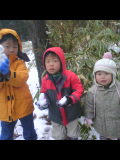 雪だるまを作って遊んでいましたが、雪がまた降ってきたので退散。