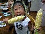 ゆうやんが持っているのは我が家で初めて作ったスイートコーン♪