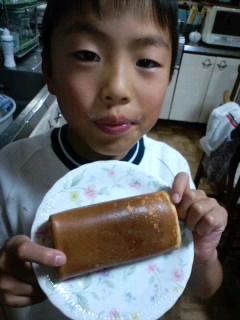 するとゆうやんも作りたくなったのか、ホットケーキを焼き、玉子焼機であんこをはさんであんまき風に。。