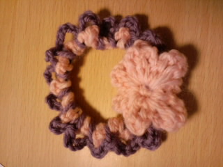 お花のモチーフを作って練習したところで、あーごん用にシュシュを編みました♪