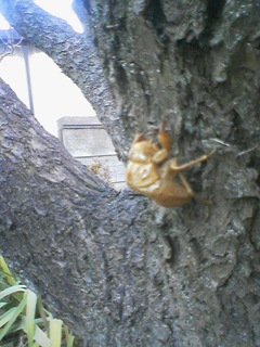 コレ(↓)蝉の抜け殻のようです。本日発見しました。蝉って夏ですよねぇ。抜け殻ってその頃ですよねぇ。。。昨年の夏からココで耐えてたのかしら・・・すごい根性だわ、この抜け殻。