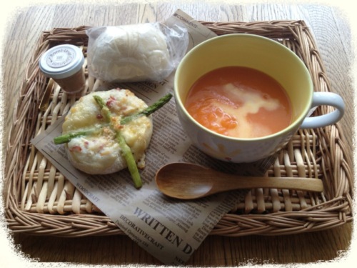 お腹にやさしくスープランチ先日お取り寄せしたANKOのパンプキンクリームスープそして穂の香さんのパン白パンには、ロミさんの「いちごミルク」し・あ・わ・せ