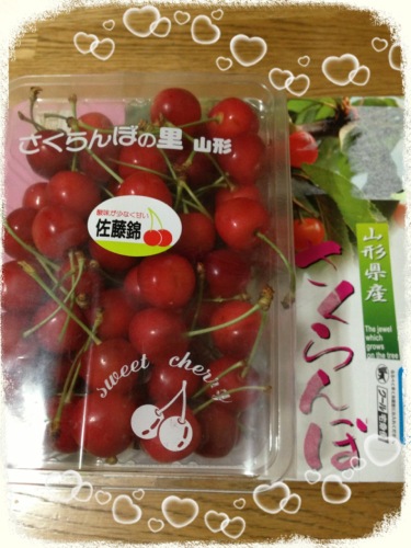 今日の関東地方は夕方から不安定なお天気急にバケツをひっくり返したような雨が降りだしたり・・・雷がドンピカだったり・・・横浜は、大丈夫だったけど仙台アシティからわぁーキラキラ佐藤錦今年の山形は雨不足で大変だったようで更に更に貴重な宝石であります大切に戴きますありがとう~
