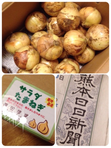 今日は寒いー>_<先日注文していたサラダ玉ねぎが熊本から届きました地元新聞が何とも言えない新玉ねぎだよー早速スライスしてポン酢とおかかであまーい!美味し〜(^O^)/丸ごと新玉ねぎスープも火にかけて明日が食べごろかなぁ…