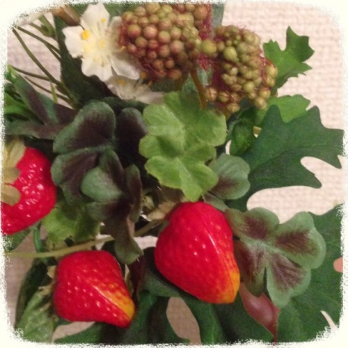 今月はイ・チ・ゴ~ブーケですそしてオーダーメイドの先生の作品コサージュステキNママからカルトナージュのメガネホルダー色合いも柄もステキありがとうございます