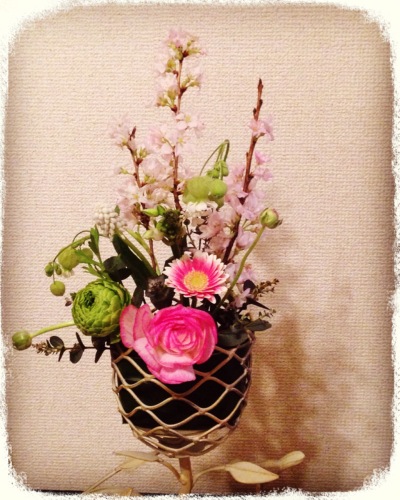 春満載のアレンジラナンキュラス啓翁桜ムスカリグリーンベルユーカリガーベラオニソガラムお花パワーで癒される夜でした今週も一週間終わりました。