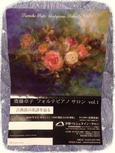 本日はクラッシックを堪能アシティより粋なB.D.プレゼントありがとう~初めて聞くフォルテピアノ卓子さまいわく現在のピアノのご先祖さま左がグランドピアノ右がフォルテピアノチェンバロのような構造調律が繊細なのだそうです古典楽器の音色は温かみがあって優しく、そして凛とした印象です。卓子さまの演奏は感情豊かに、激しくそして優しく・・・アンコールを2曲あっという間の2時間強でしたステキな時間心が浄化されました余韻に浸りながら銀座に移動し虎屋茶寮で一服抹茶白玉ぜんざい程よい甘さでほっこりと夜は焼き鳥で今日の興奮冷めやらぬまま名残惜しく帰路につくのでしたakiちゃんからは女子力UPのプレゼント老け込まないように頑張るよありがとう~仙台caoちゃんもハードスケジュールで演奏会に久しぶりにお元気そうでヨカッタkazunori ikedaさんの焼き菓子だ( *´艸`)ありがとう~