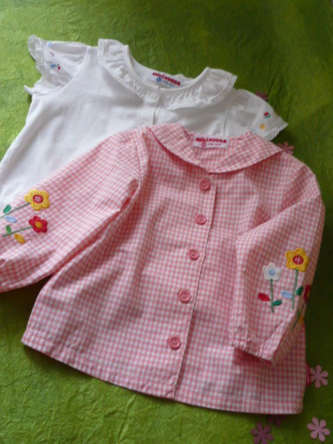 おばあちゃんに買ってもらったミキハウスのブラウス秋に買って、すぐ寒くなり 殆ど着ていないため 本当にキレイなんですよ~。ピンクのチェック、(花の刺しゅう入り)のみ、楽天オークションで1円スタート出店中です。よかったら のぞいて見て下さい