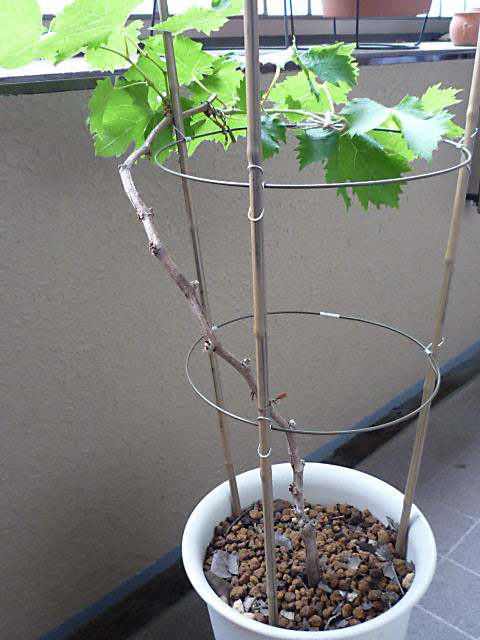 念願のぶどうを買いました以前、家族旅行でお世話になった ペンションにおいてありおしゃれでいい感じなブドウに家族全員 『いいね~』と意見は一致。子供達は、ただブドウが食べたいだけ?という 話も聞きますが家族でいいねぇ~は中々ないので いつか・・・。と、検討すること 3年。ふと、立ち寄ったホームセンターで売れ残りさんを お安くGetなんとか、あの、オシャレな感じを再現したくて、ブラウンにした支柱も、大正解今、一番の 和みスポットです。ブドウだけではさみしので、いろいろ野菜たちが増え 緑のカーテン 作りたくなった私。でも、そこで問題が。我が家のベランダはサンが出ていないので、ネジ式のフックが取り付けれない構造で、コンクリートの外壁に どうやって ネットをするか・・という事。そこで、検索すること1時間・・・。やっとみつけた突っ張りグリーンカーテン GCT-275 □□価格:2,480円(税込、送料別)突っ張りグリーンカーテン 台風でも大丈夫?らしい早速、買ってきた“きゅうり” に使いたくて 購入です。きゅうりやブドウの生育記録は後日に。