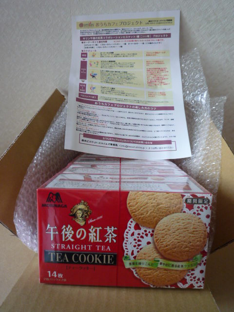 6月に新発売される 森永×キリン午後の紅茶 コラボレーションビスケット3種 【2010】の中の のモニターをすることになりました。 ●<ストレートティー>クッキー「午後の紅茶ストレートティー」で使用しているディンブラ産茶葉を加えて焼き上げた、香り豊かなプレーンクッキー。 【内容量】14枚(2枚パック×7袋) 【原材料】小麦粉、ショートニング、砂糖、鶏卵、バターオイル、植物油脂、紅茶飲料(午後の紅茶ストレートティー100%)、マーガリン、 紅茶葉、ぶどう糖果糖液糖、食塩、香料、乳化剤(大豆由来)、膨張剤送られてきた 箱には なんと5箱 うれしい!『ただいま~』って 帰ってきた 娘と 早速 試食 しました。こんなの みたことないね~ って、まだ、発売前なんだって・・・。なんて開けると確かに紅茶のニオイがする 娘の 第一感想は、シフォンケーキの味だぁ~でした。確かにそうなんだけど、もう少し しっとり感があったら まさに その通りという感じです。でも、上品で、優しい味 はまさに 午後ティー詳しい事を知りたくて(食べる前にみなよ)説明書をみるとなんでも おいしさの秘密は 練りこみの水にあるのだとか。普通のクッキーは水を練りこむところ、紅茶をペットボトルからそのまま使用。紅茶の味がなかなか出ず、試行錯誤の繰り返しだったとか。いろんな 苦労があって 午後の紅茶飲料の味を忠実に再現することができた とあります。そうか~深イイ~そんなことを 考えると 残りの2つの新発売 も試してみたくなった 私です。ありそうで なかった?紅茶クッキー 午後の紅茶 クッキー お勧めです。