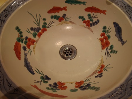 十四代柿右衛門さんの 遺作となった作品で ななつ星の十四室 それぞれ違った洗面鉢が 備え付けられています