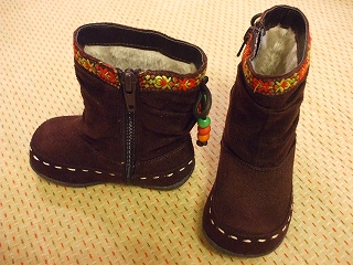 三女のお気に入りは赤い長靴。雪の日や雨の日はよいけれど、晴れの日にも履きたがる。なので、前からブーツを買ってあげたかったのだ。お店に行って試し履きしても、三女は「いらない」と言う。もうバーゲンで冬のブーツは安くなっていて、1000円だったので、三女に「ながぐつだよ」と言って履かせ、購入しました。こげ茶で後ろに飾りがあって、かわいい。サイズは14センチ。少し大きいんだよね。これからお出かけの時は履かせようっと。