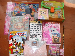 お正月に母の私が福袋を購入したので、次女も「欲しい」というので、雑貨屋さんの文具の福袋を購入しました。紙袋はミッキーマウスの絵でした。1050円。中身はこんな感じ ↓ディズニー系のらくがき帳や折り紙ケース、スタンプ、写真入れなどなどでした。次女は大喜びでしたよ。