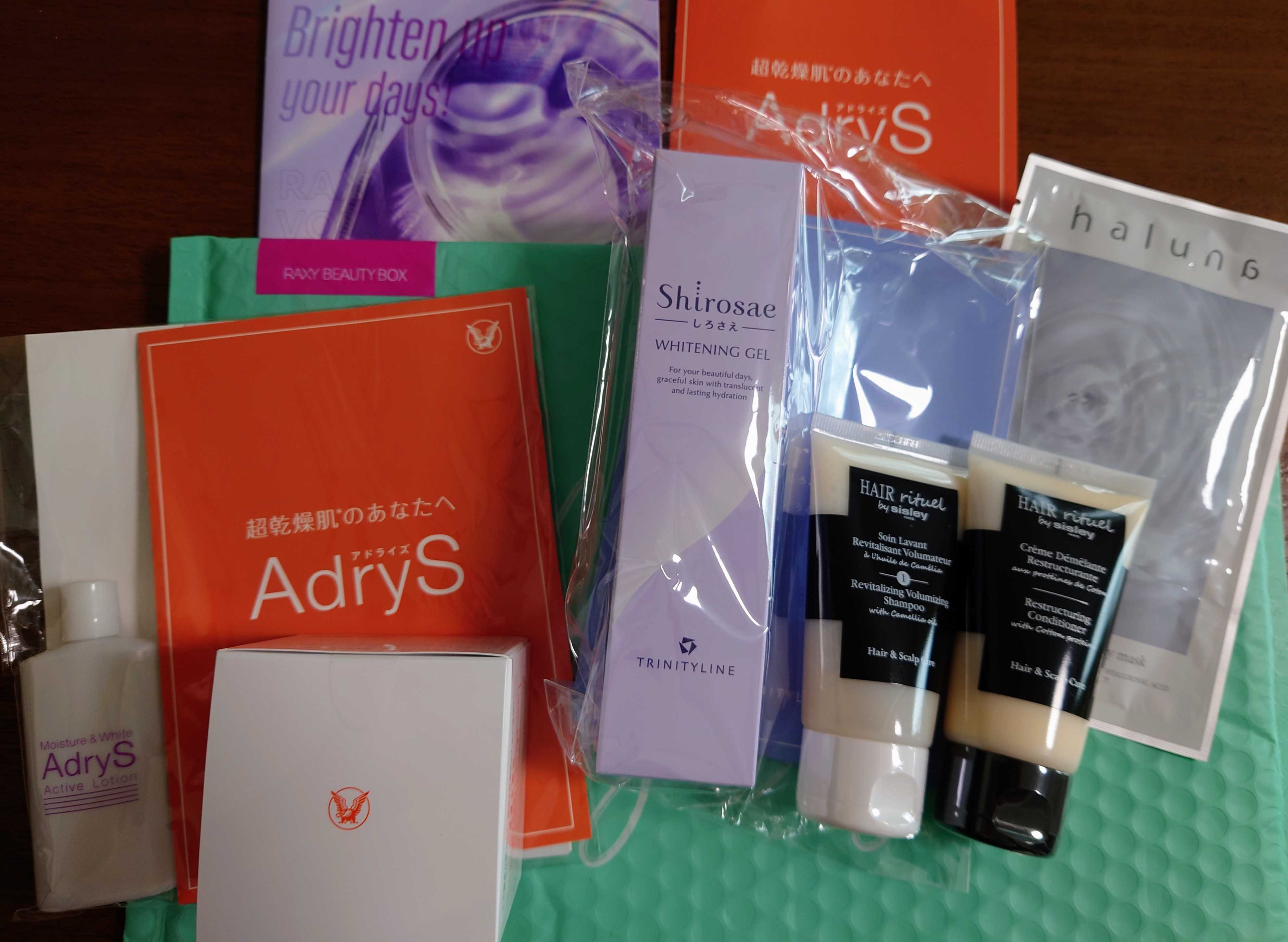 今月のRAXY届きました。いつもはBOXに入ってるのに、今回は可愛い袋に入ってきて、ワクワク✨アドライズ嬉しい!シスレーのヘアケアセットは早速使ってみよう💕