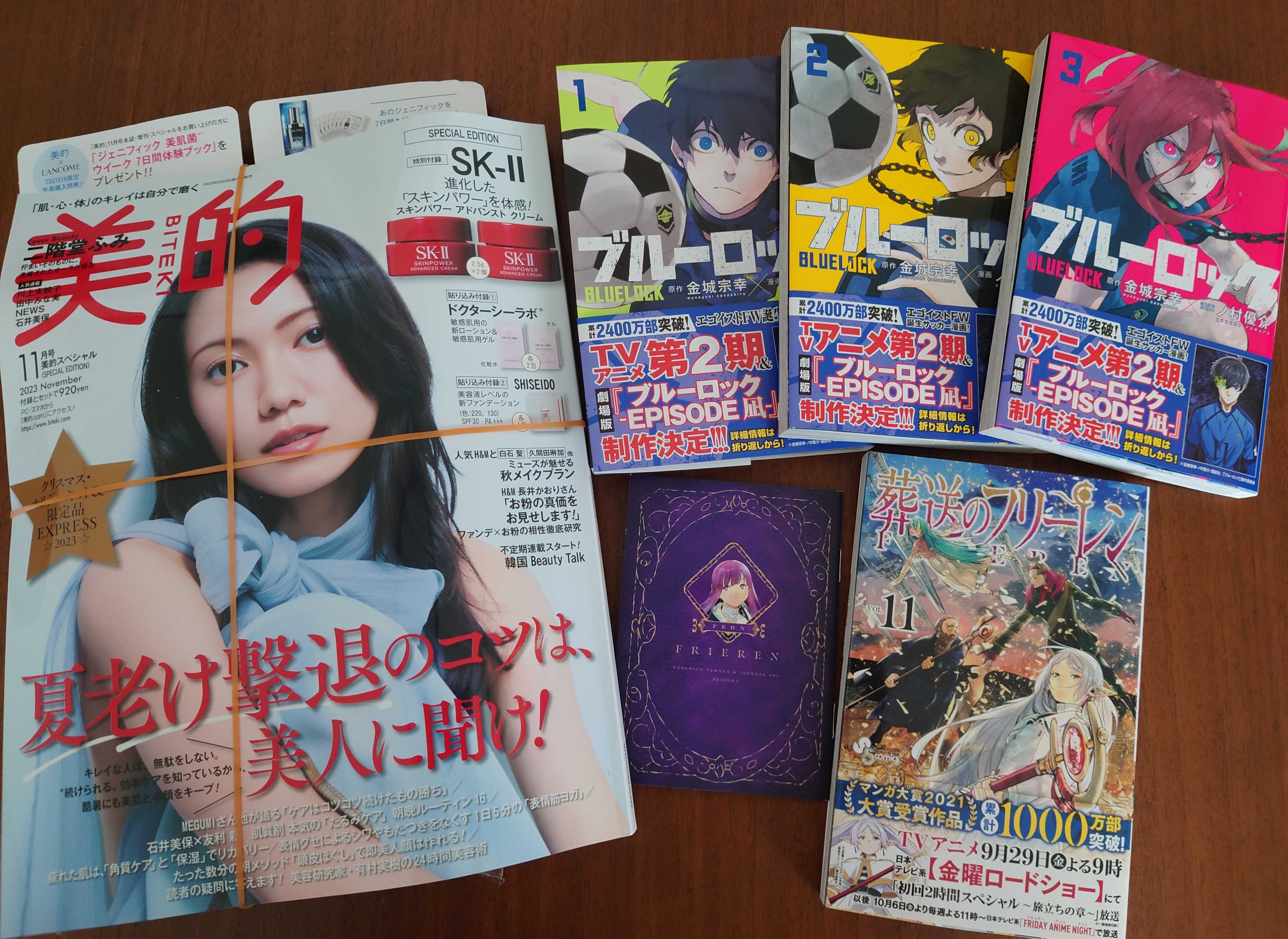 久しぶりに、TSUTAYAに行ってきました💨ブルーロックはパパと息子用。フリーレンは私用。美的は付録違い版があったので、GET!