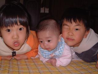 骨折から、3週間の母。今日は肘関節周囲のギプスカットをしたそうな。皮膚は切れない、と言われていても、すごい怖いらしいです。腕は軽くなったけど、その分、不安定になり、きっちり、三角巾でつってないとね、って感じだそうです。とりあえず、1週間後、またレントゲンだそうです。頑張ってねん。弟2号より、松本3兄弟の写真、いただきました。松本3号、かわいい~~。もう、うつぶせ、できるんだ~~。