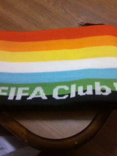 マフラー、もらいました、オットから。かっこいいんだか、わからないですが…日本テレビでやってる、クラブ対抗の試合のグッズらしいです。テレビの宣伝をしているアナウンサーとかが、している、アレです。え~、こんな長いの、どこにしていけと?でも、「わ~、きれい~」といただきました。他にも、古着屋サンから、コートとか、いっぱい買ってきたようで、私にも、1着くれました。う~~ん。ゴメンね~、いつもいつも喜べるわけじゃないんだ~。プレゼントは、年に1~2回で、いいよ。